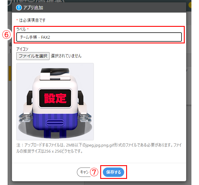 ⑥ラベルへ「チーム手帳 - FAX2」と入力します。